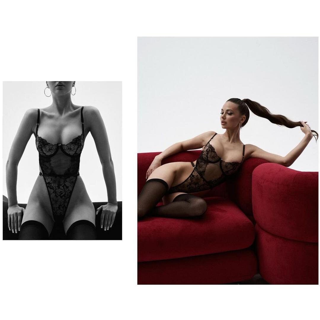 Der Body CASEY, mit seiner floralen Spitze und seinem kühnen mittigen Ausschnitt, ist entworfen, um der sexieste und luxuriöseste Body zu sein. Sehr hoch ausgeschnitten, betont er Ihre Silhouette und verleiht ihr Länge, wodurch er einen Hauch von Eleganz und Glamour hinzufügt.