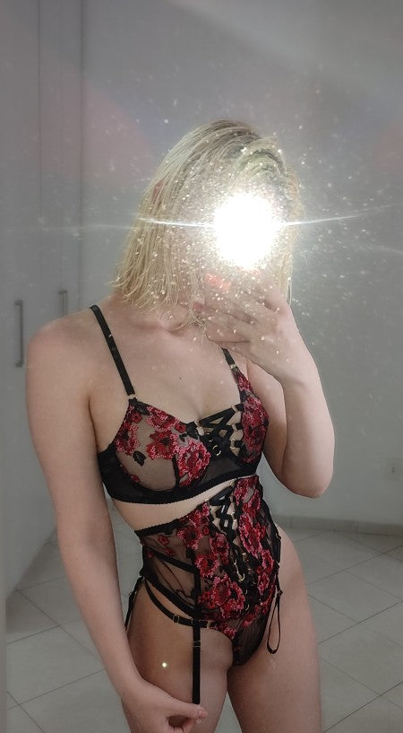 Provokatives Design Tauchen Sie ein in die sinnliche Ausstrahlung des DISTANCE-Sets. Dieses Set aus roter, floraler Spitze strahlt Kühnheit und Leidenschaft aus, mit einem Bügel-BH, einem formenden Strapsgürtel, einem passenden Tanga und Oberschenkelschlaufen, die Ihre Figur unwiderstehlich betonen.